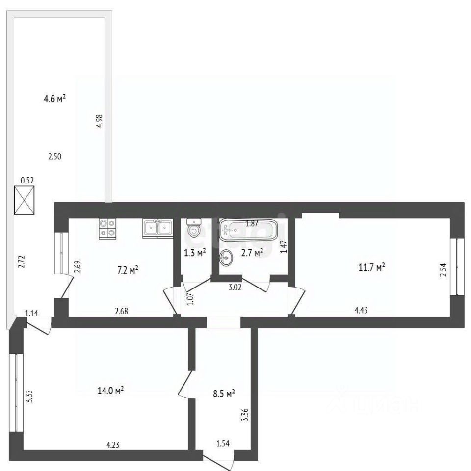 Бонус: Из кухни — выход на просторный балкон. Идеален для зоны отдыха, кабинета или оранжереи!