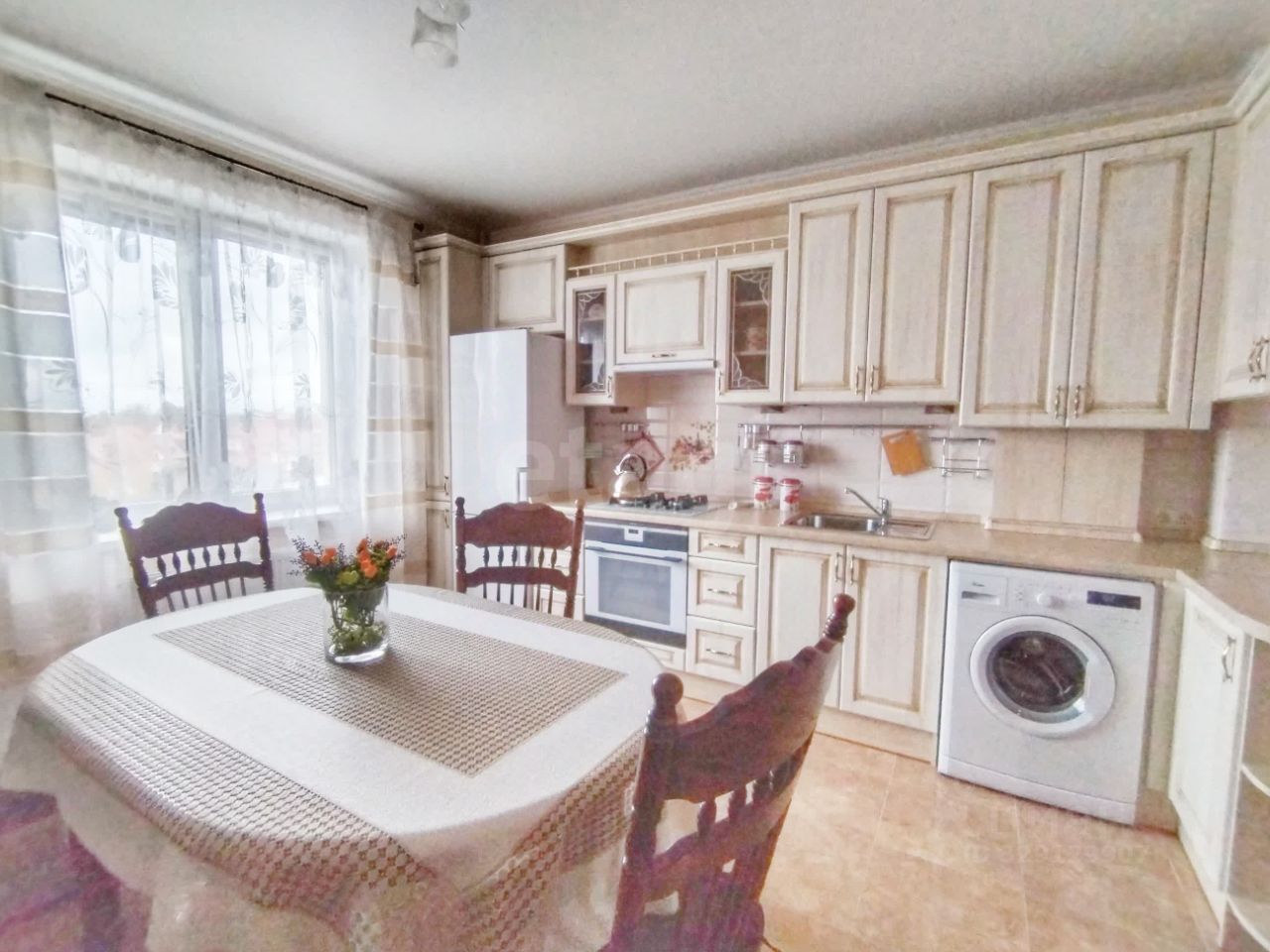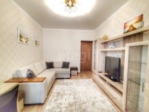 Планировка функциональна: изолированные комнаты, совмещенный санузел и просторная кухня 16 м², которую можно использовать как дополнительное жилое пространство. Высота потолков 2.9 метра создает ощущение простора. Квартира имеет качественный евроремонт и полностью укомплектована для комфортного проживания: встроенная кухня, мебель для хранения вещей и спальные места, а также вся необходимая техника, включая холодильник и стиральную машину. Дополнительный комфорт обеспечивает система теплых полов на кухне и в коридоре. Утепленная лоджия с розеткой и освещением оснащена шкафом-купе.