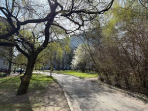 Спокойный, тихий и зеленый двор, есть парковка во дворе.