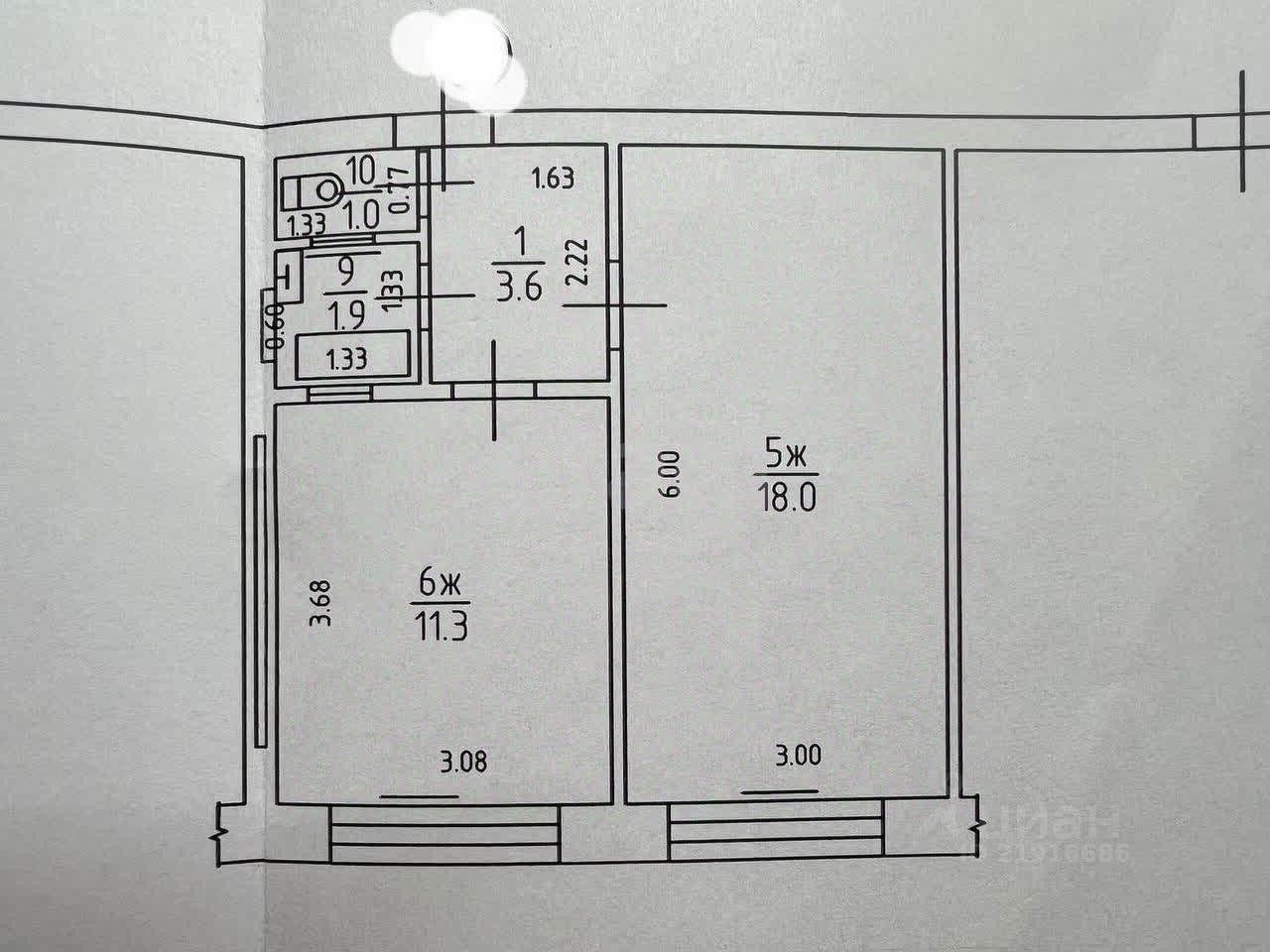 Общая площадь 35,8 м2, две раздельные комнаты, в одной из которых можно установить кухню, раздельный санузел. Все выводы под кухню сделаны, осталось выбрать кухонный гурнитур по своему вкусу.