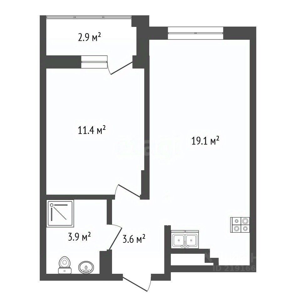 Общая площадь 38 кв.м., кухня - гостиная 19.1 м2, комната 11.4, совмещенный санузел, застекленная лоджия. Квартира расположена на 7 этаже в середине дома. Автономное газовое отопление.