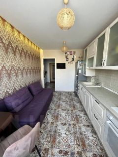 В квартире сделан качественный ремонт с использованием европейских материалов. Она продаётся полностью готовой к проживанию — с техникой и мебелью. Вам не придётся ничего докупать: холодильник, стиральная машина, вытяжка, газовая плита с духовкой, телевизор на кухне — всё остаётся новым хозяевам. Из мебели — два дивана (в комнате и на кухне), обеденный стол со стульями, тумба под телевизор. Отдельного внимания заслуживает вместительная гардеробная с дверями, где легко можно разместить вещи.
