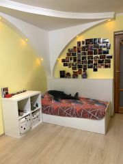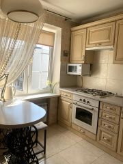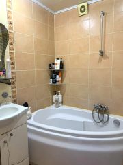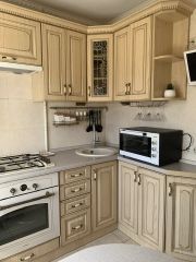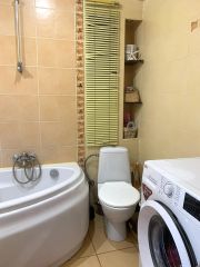 Кухня светлая и оснащена техникой ,встроенной мебелью. В квартире установлен теплый пол, который добавляет уюта в холодные дни. Ванная комната совмещенная, оформлена плиткой и оборудована всем необходимым.
