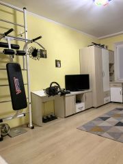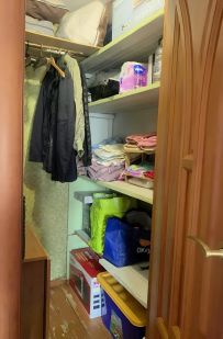 В прихожей предусмотрены вместительные шкафы для хранения вещей. В комнате есть гардеробная, что позволяет удобно организовать пространство.