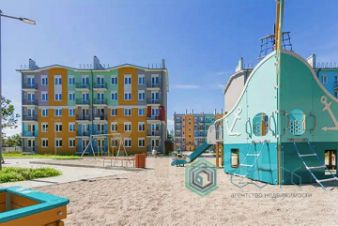 Территория жилого комплекса закрыта, оборудована автоматическими воротами, видеонаблюдением, внутри большая современная детская площадка и просторная парковка. Дом 2021 года постройки, кирпичный.