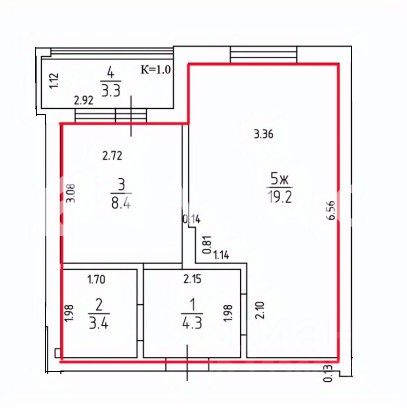 Общая площадь квартиры с учетом лоджия - 38,6 кв.м
