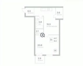 Площадь апартов 56,9 кв м, расположены на 2 этаже.