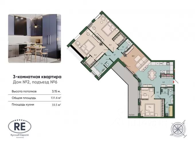 Продаётся 3-комнатная квартира в строящемся доме (Вдохновение (Дом 6, корпус 2)), срок сдачи: IV-кв. 2026, общей площадью 131 кв.м., на 10 этаже. Эпохальным событием в градостроении станет строительство первого в России Нарру Сіtу — Счастливого Города под названием "RусскаЯ ЕвропА". Новый экоквартал комфорт-класса на площади более 20 гектаров. Новый уровень комфортамногоэтажной застройки. От создателей Цветного Бульвара жилого комплекса, удостоенного множества наград, в том числе Федеральной премии URBAN AWARDS 2018 "Лучший региональный жилой комплекс комфорт-класса".Каждая квартира — индивидуальный проект, выполненный по европейским стандартам эргономики жилья. Энергосберегающее панорамное остекление открывает живописные виды и создает солнечное настроение, окна во всю стену от потолка до пола наполняют помещения светом. Тройной стеклопакет в алюминиевом профиле обеспечивает звуко- и теплоизоляцию. Высота потолков от 3-метров, рациональное размещение дверей, окон и вентканалов обеспечивают правильную циркуляцию воздуха в помещениях, способствуя созданию здорового микроклимата и экономию средств на отоплении и кондиционировании.Просторные балконы-террасы шириной от 2м — комфортабельное пространство, по сути, летняя гостиная + столовая + лаунж-зона — место отдыха для всей семьи и уединенного релакса. Домашняя сауна в ванной комнате — свежее решение и практичный вариант для истинных любителей банного отдыха и оздоровительных процедур в любое удобное время у себя дома."Условно грязная зона" прихожей отделена от чистой, за "пограничной чертой" — домофон и гостевой туалет, также выполняющий функции прачечной с местом для хранения бытовой химии, которую небезопасно держать в ванной. Третий кран с питьевой водой на кухне. Автономное отопление регулируется компактным теплопунктом в квартире, все громоздкое оборудование вынесено в отдельную придомовую газовую котельную, газа в квартирах нет.В первом жилом комплексе "Ласточкино гнездо" проекта "RусскаЯ ЕвропА" объединена архитектурная стилистика городов России и соседствующих европейских. Создана совершенно новая среда, где здания и природный ландшафт становятся единым целым. Это положительно сказывается не только на архитектурном облике всего комплекса, но и позволит в будущем каждому жителю почувствовать тесную связь и единение с природой.Комплекс "Династия". Чистота и гармония ритма архитектурного ансамбля, экологичность застройки в приоритете:- Закрытый трафик автомобилей с полной изоляцией зоны автостоянок транспорта от жилой зоны микрорайона;- Использование дождевой воды на технологические нужды в эксплуатации как квартир, так и комплекса в целом;- Использование возобновляемых источников энергии;- Современные, инновационные решения по функциональности пространства планировочных решений квартир;- Эксплуатируемые кровли с панорамными видами, оборудованные под общественные зоны отдыха.Эксперты строительной отрасли и ведущие архитекторы региона по праву называют проект "RусскаЯ ЕвропА" самым большим и з