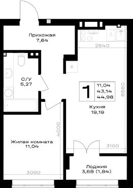 Общая площадь44,98 м²