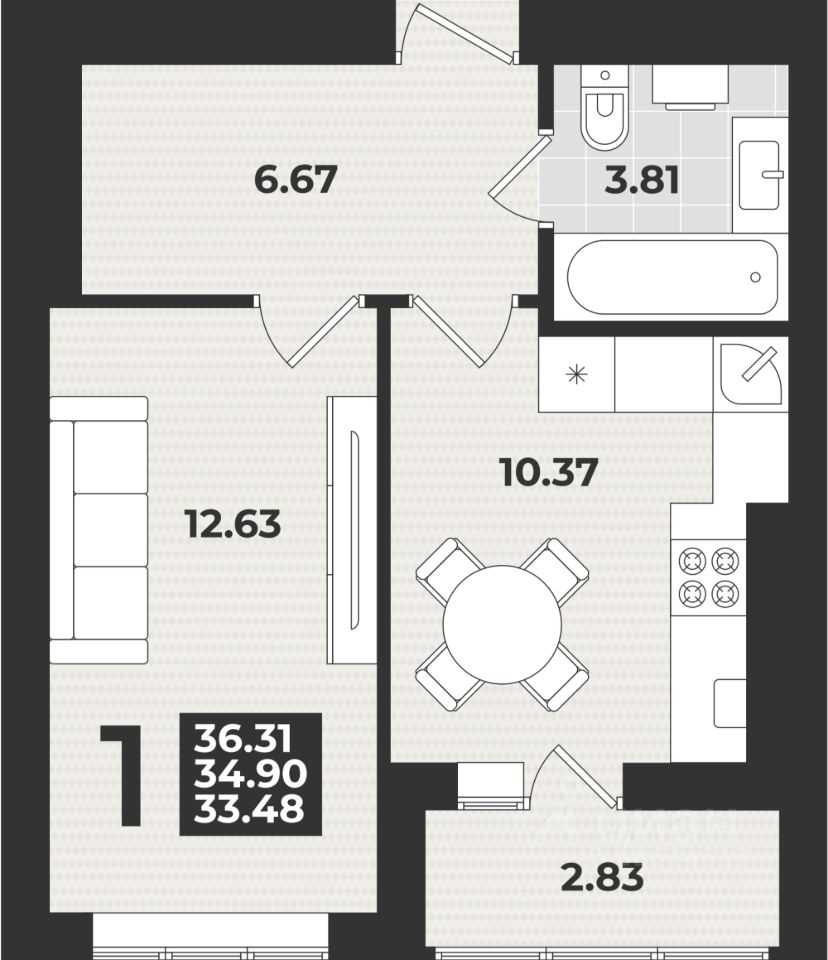 Продаётся 1-комнатная квартира в строящемся доме (Дом 3 (1 этап)), срок сдачи: II-кв. 2026, общей площадью 36.31 кв.м., на 6 этаже. Новый жилой комплекс "11 Мая" от застройщика "ГК Модуль-Стройград" расположен по адресу: г. Калининград, улица Согласия.