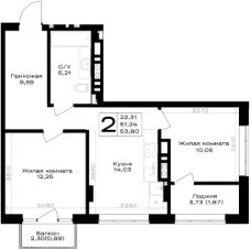Общая площадь53,8 м²