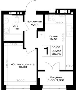 35,75 м²