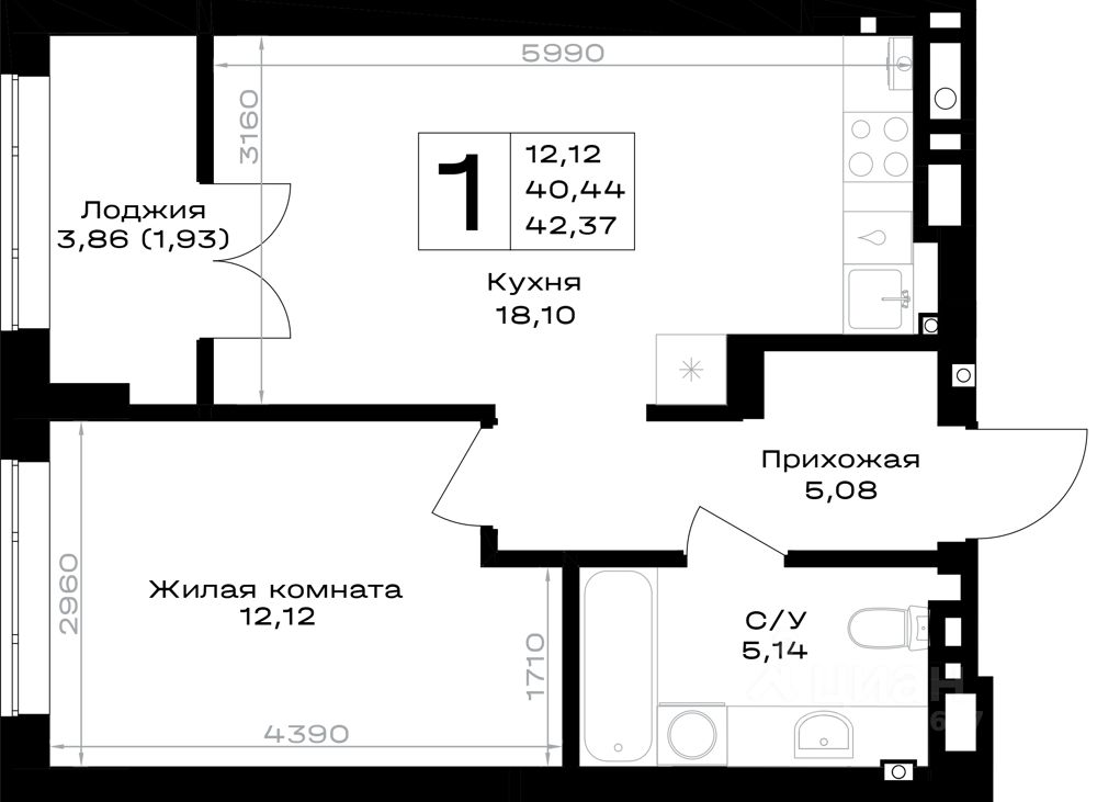 Продаётся 1-комнатная квартира в строящемся доме (Дом 25 (2 очередь)), срок сдачи: IV-кв. 2028, общей площадью 42.37 кв.м., на 3 этаже. Новый жилой комплекс "Включи" от застройщика "СпецСтройКубань" расположен в г. Гурьевск в районе Гурьевского шоссе.
