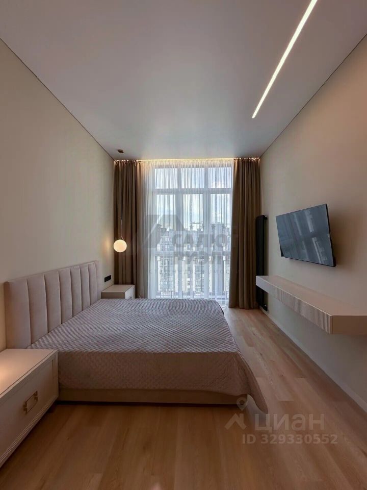 Kвaртирa paсположена на 10 этаже, имеет панорамное остекление, высота потолков составляет 3,30 м., автономное отопление. В квартире выполнен дизайнерский ремонт и установлен полный комплект мебели, а также техники для комфортной жизни.