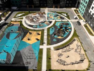 На территории комплекса размещена уникальная детская площадка, не имеющая аналогов в Калининграде