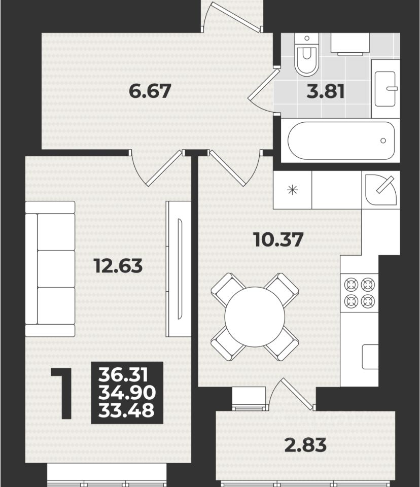 Продаётся 1-комнатная квартира в строящемся доме (Дом 3 (1 этап)), срок сдачи: II-кв. 2026, общей площадью 36.31 кв.м., на 5 этаже. Новый жилой комплекс "11 Мая" от застройщика "ГК Модуль-Стройград" расположен по адресу: г. Калининград, улица Согласия.