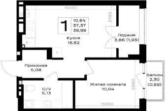 Общая площадь39,99 м²
