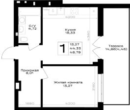 Продаётся 1-комнатная квартира в строящемся доме (Дом 26 (2 очередь)), срок сдачи: IV-кв. 2028, общей площадью 48.79 кв.м., на 1 этаже. Новый жилой комплекс "Включи" от застройщика "СпецСтройКубань" расположен в г. Гурьевск в районе Гурьевского шоссе.