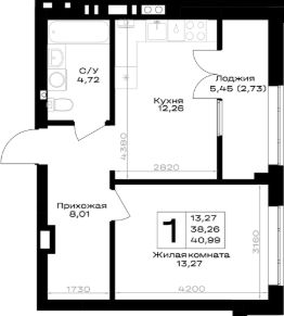 Общая площадь40,99 м²