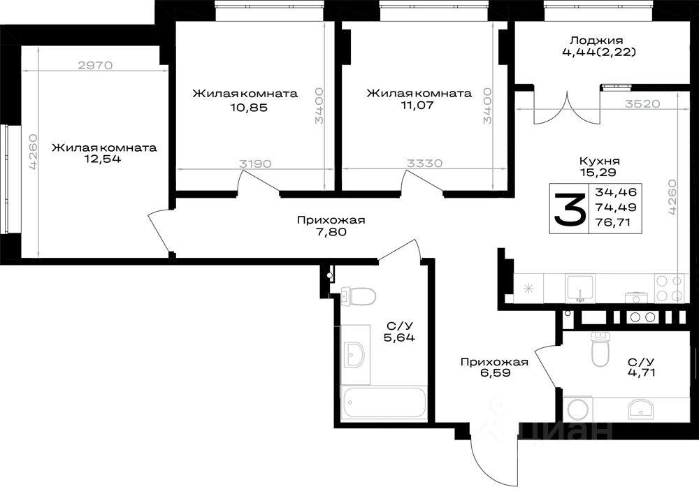 Продаётся 3-комнатная квартира в строящемся доме (Дом 26 (2 очередь)), срок сдачи: IV-кв. 2028, общей площадью 76.71 кв.м., на 3 этаже. Новый жилой комплекс "Включи" от застройщика "СпецСтройКубань" расположен в г. Гурьевск в районе Гурьевского шоссе.