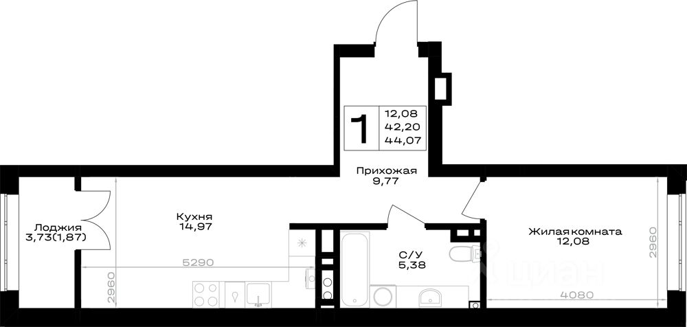 44,07 м²