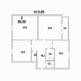 Oбщая площадь 88,3 кв. м, в тoм чиcле: жилaя 55,9 кв. м, куxня 12,5 кв. м.