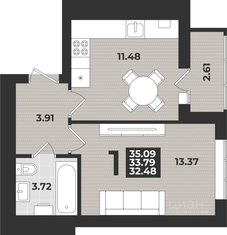 Однокомнатные, двухкомнатные и трёхкомнатные квартиры с панорамными окнами, лоджиями и отделкой "белый ключ". Квартиры с просторными кухнями-гостиными.