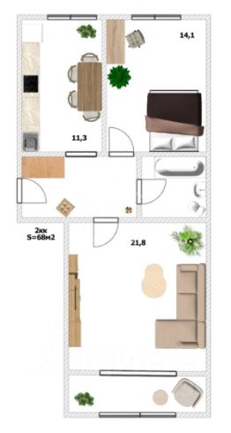 Отличная планировка для семьи (есть место и ребенку, и кабинету) или для пары, которая ценит покой.