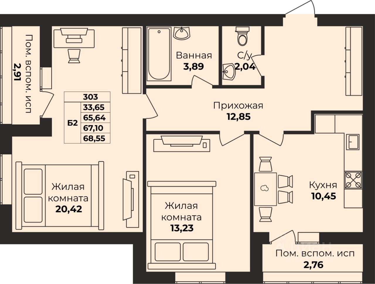 Общая площадь67,1 м²