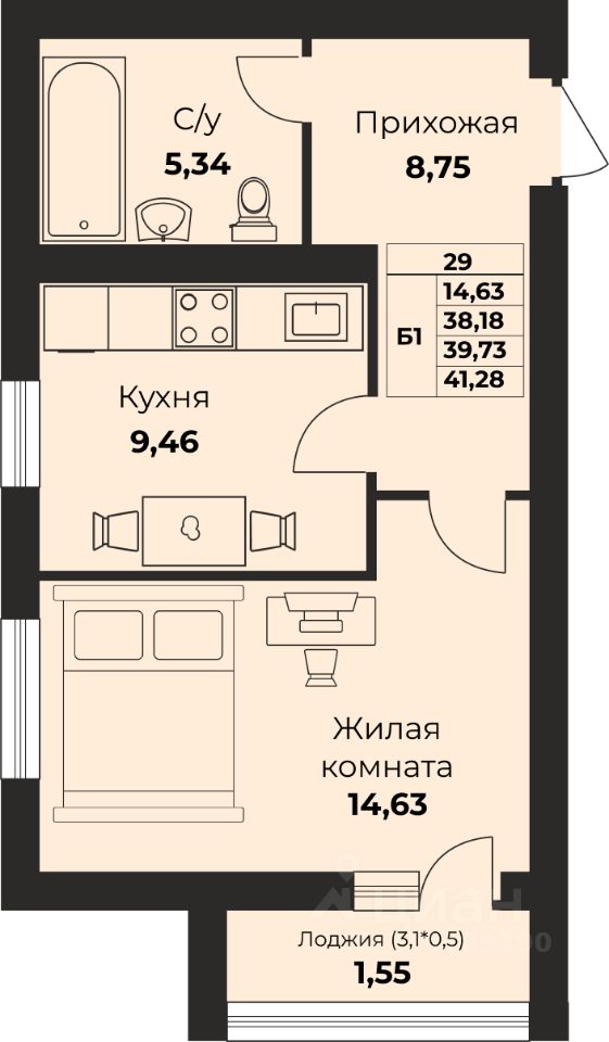Жилая площадь14,4 м²