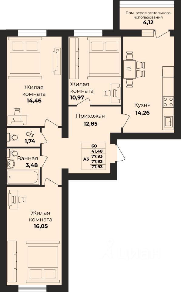Жилая площадь41,5 м²