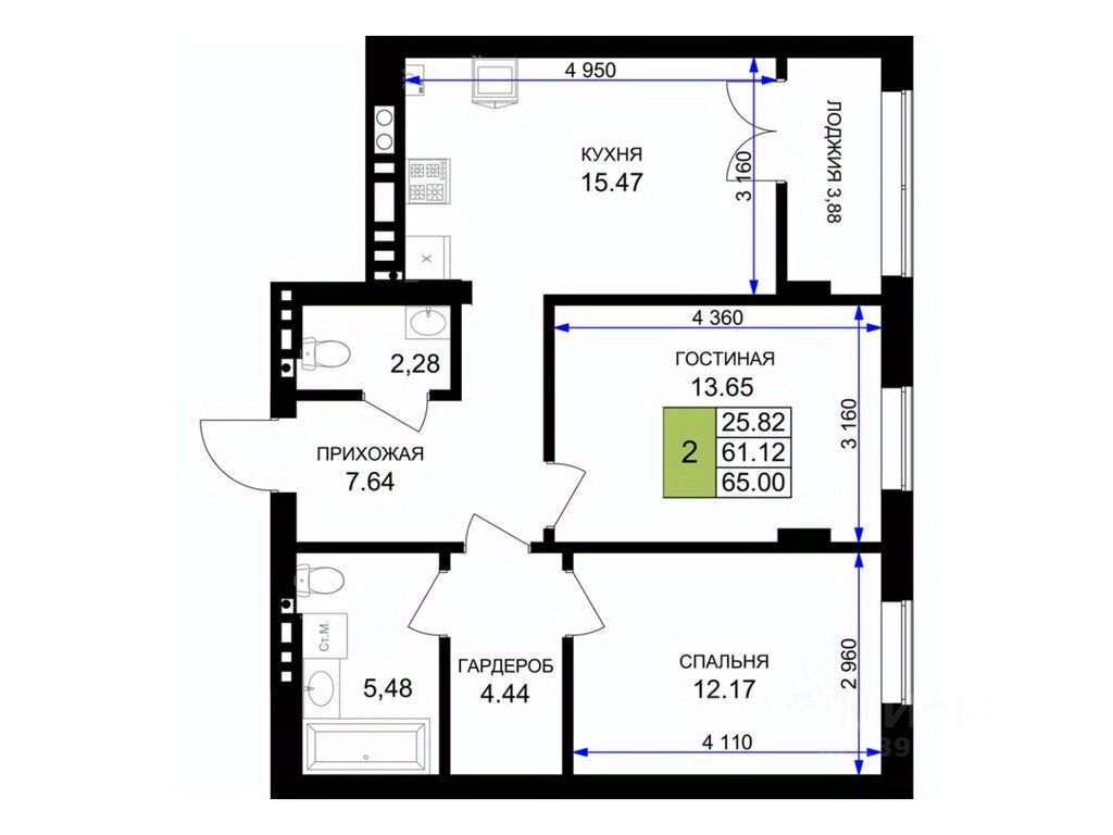Общая площадь66 м²