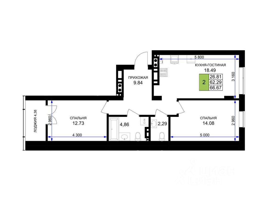 Общая площадь67,5 м²