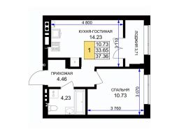 Однокомнатная квартира - это гармоничное сочетание современной планировки, естественного света и продуманной функциональности. Пространство легко зонируется на спальную и гостиную зоны, а просторная кухня с возможностью размещения полноценной обеденной группы становится центром домашнего уюта и встреч с близкими. Лоджия, выходящая из жилой зоны, расширяет полезную площадь: здесь можно организовать рабочий уголок, мини-оранжерею или уютное место для отдыха с чашкой кофе утром.