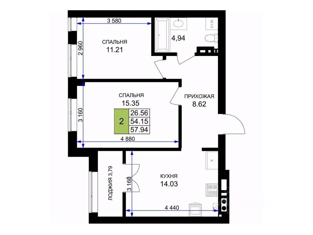 Общая площадь58,6 м²