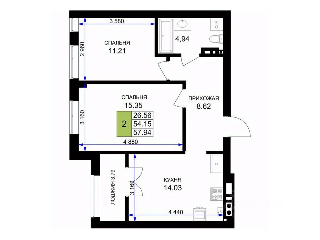 Общая площадь58,9 м²