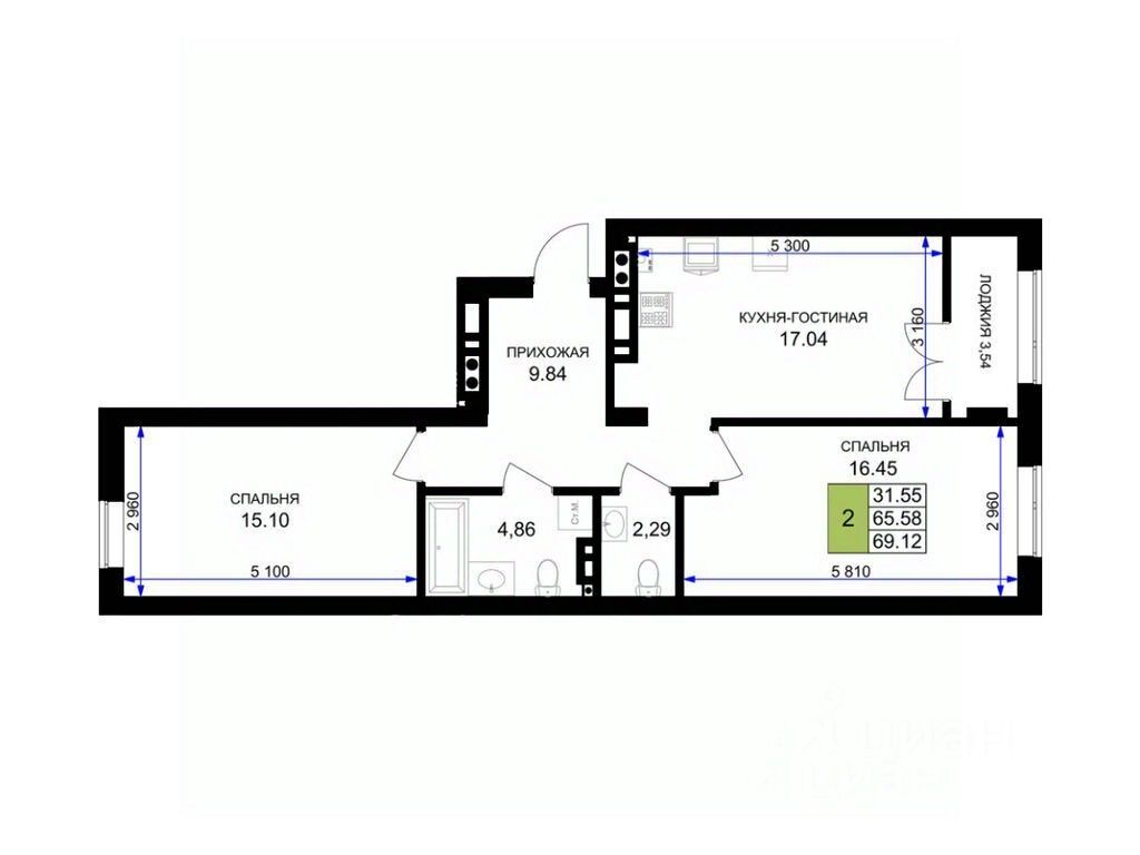 Общая площадь69,8 м²