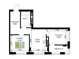 Продается 2-комн. квартира, 54,3 м²