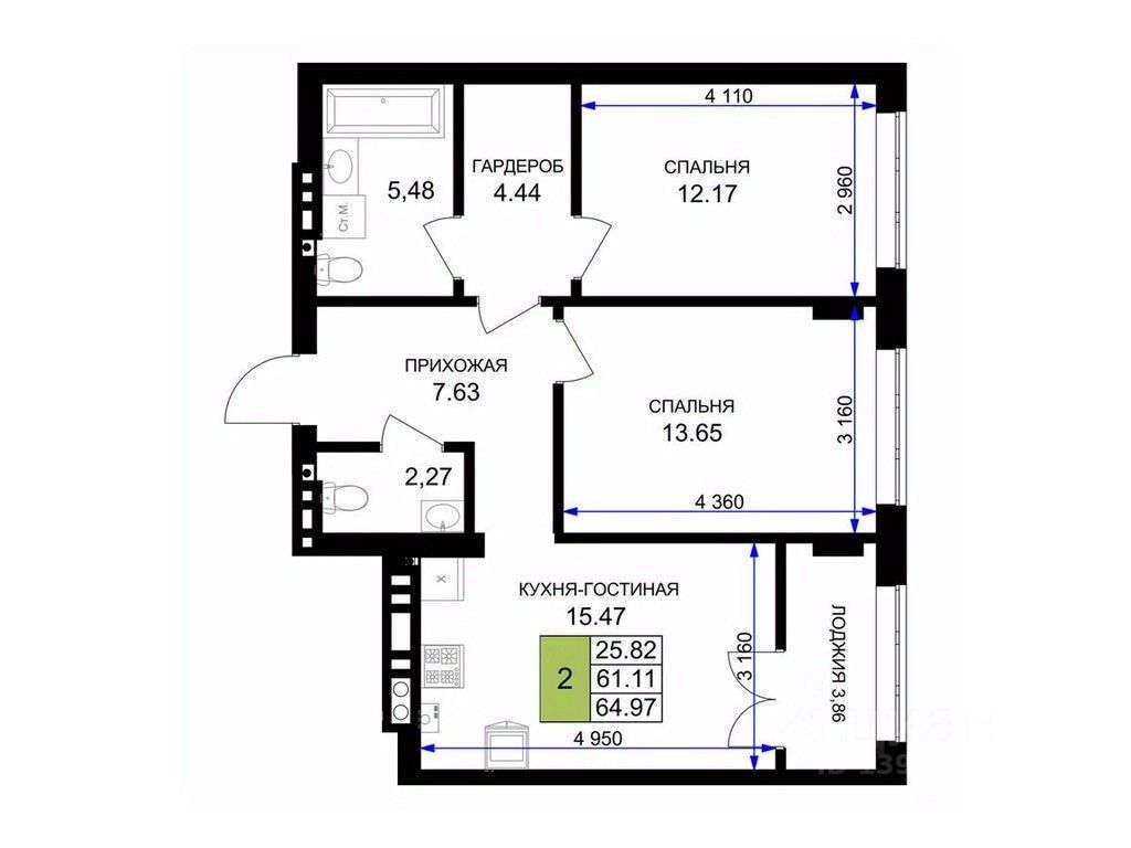 Двухкомнатная квартира - это продуманное пространство для комфортной жизни всей семьи. Две изолированные комнаты обеспечивают приватность и гибкость в зонировании: здесь легко разместить спальню, детскую, кабинет или гостиную - в зависимости от ваших потребностей. Просторная кухня вмещает полноценную обеденную зону и дополняется встроенной кладовой, где удобно хранить продукты, бытовую технику или кухонную утварь, сохраняя порядок в основной зоне. Лоджия добавляет функциональную площадь - для хранения, сушки белья или создания уютного уголка отдыха.