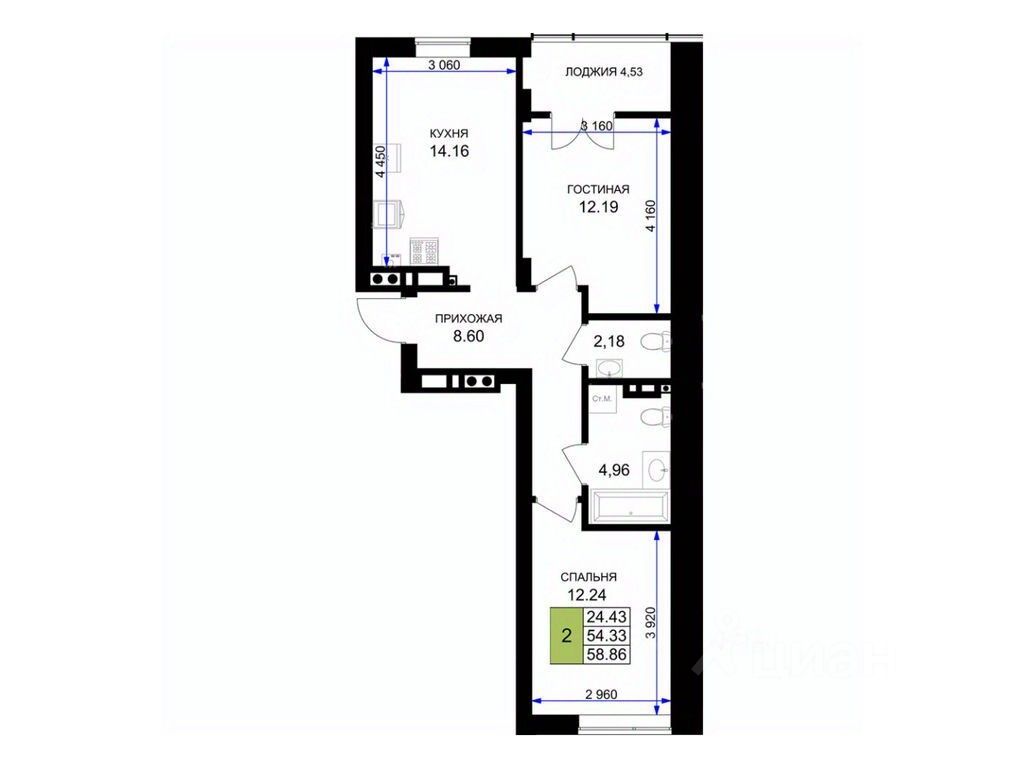 Общая площадь59,5 м²
