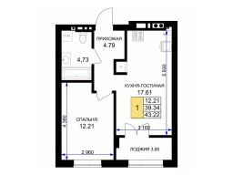 Продается 1-комн. квартира, 43,6 м²