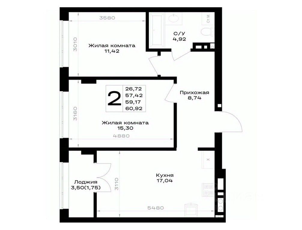 Общая площадь59,17 м²