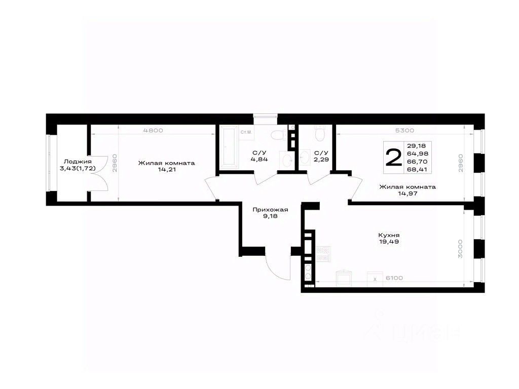 Общая площадь66,7 м²