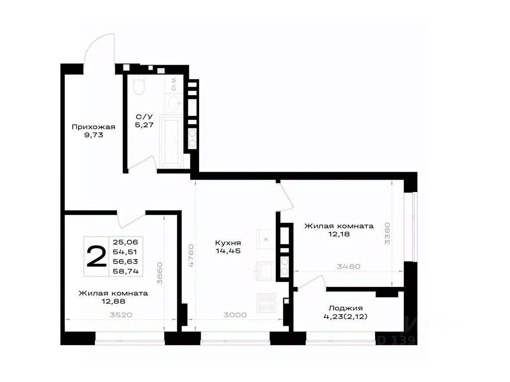 Общая площадь56,63 м²