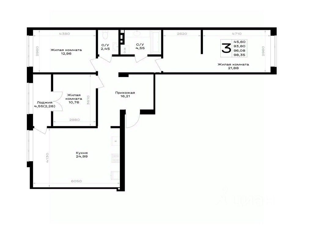 Общая площадь96,08 м²