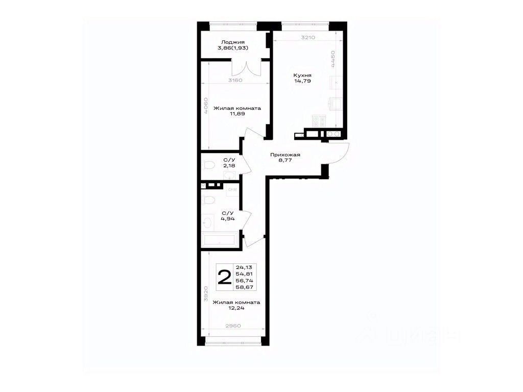 Общая площадь56,74 м²