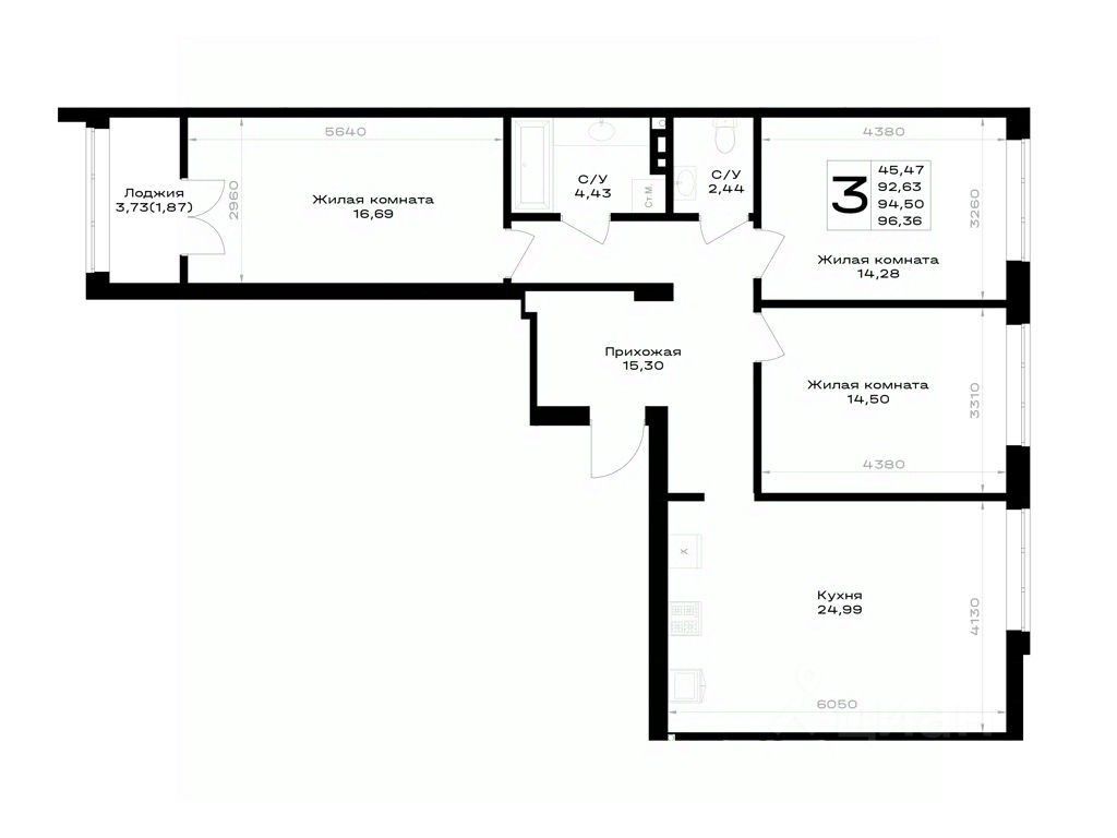 Общая площадь94,5 м²