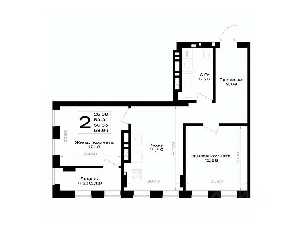 Общая площадь56,53 м²