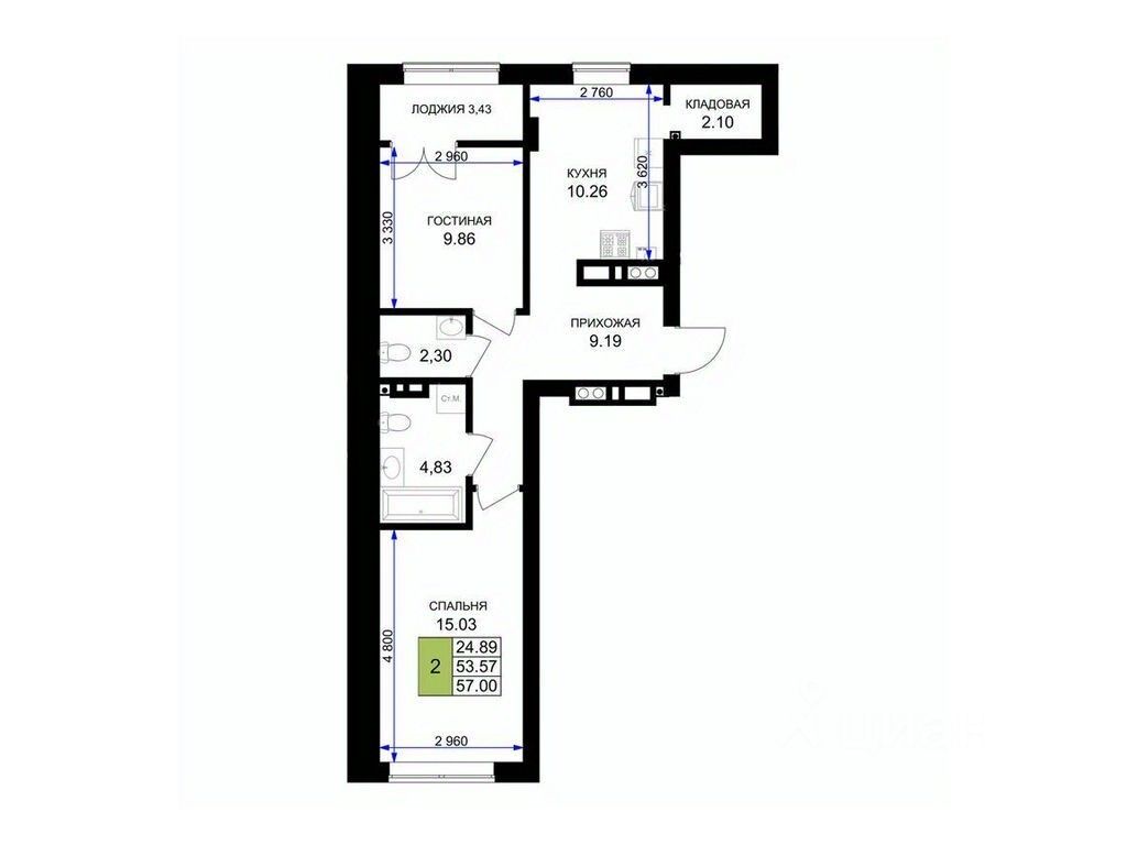 Общая площадь58,1 м²