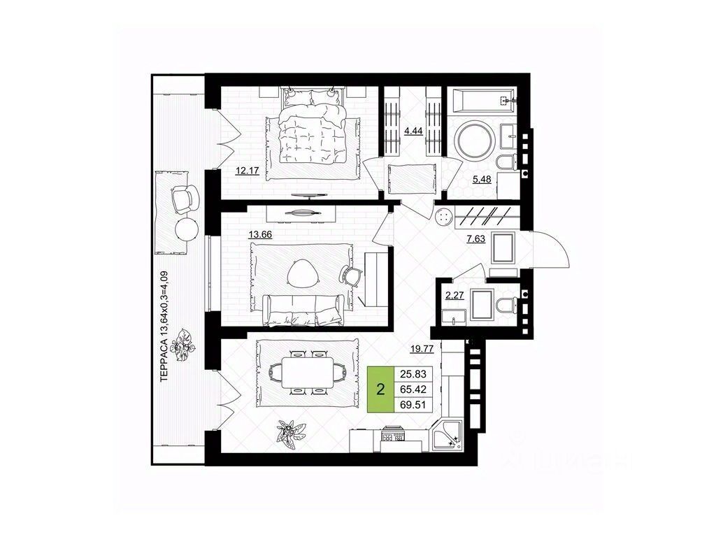 Двухкомнатная квартира - это продуманное пространство для комфортной жизни всей семьи. Две изолированные комнаты обеспечивают приватность и гибкость в зонировании: здесь легко разместить спальню, детскую, кабинет или гостиную - в зависимости от ваших потребностей. Просторная кухня вмещает полноценную обеденную зону и дополняется встроенной кладовой, где удобно хранить продукты, бытовую технику или кухонную утварь, сохраняя порядок в основной зоне. Лоджия добавляет функциональную площадь - для хранения, сушки белья или создания уютного уголка отдыха.
